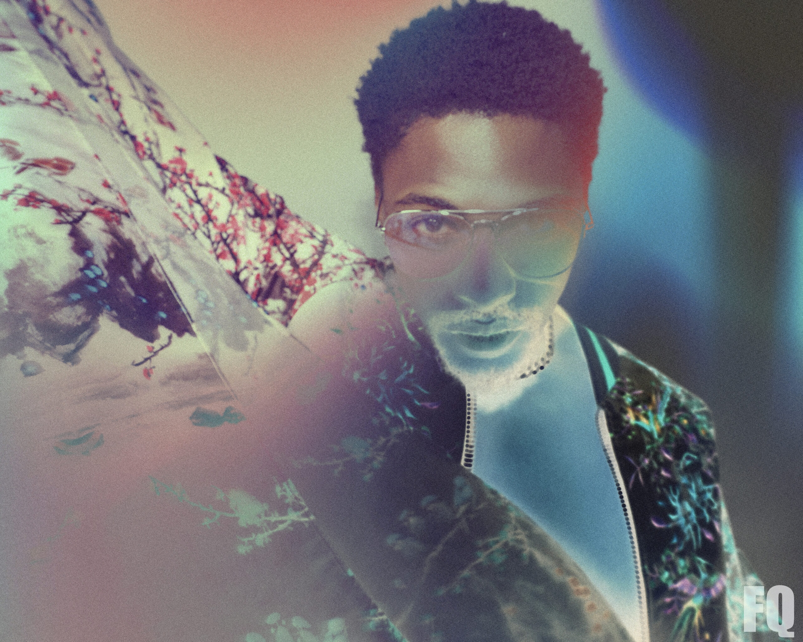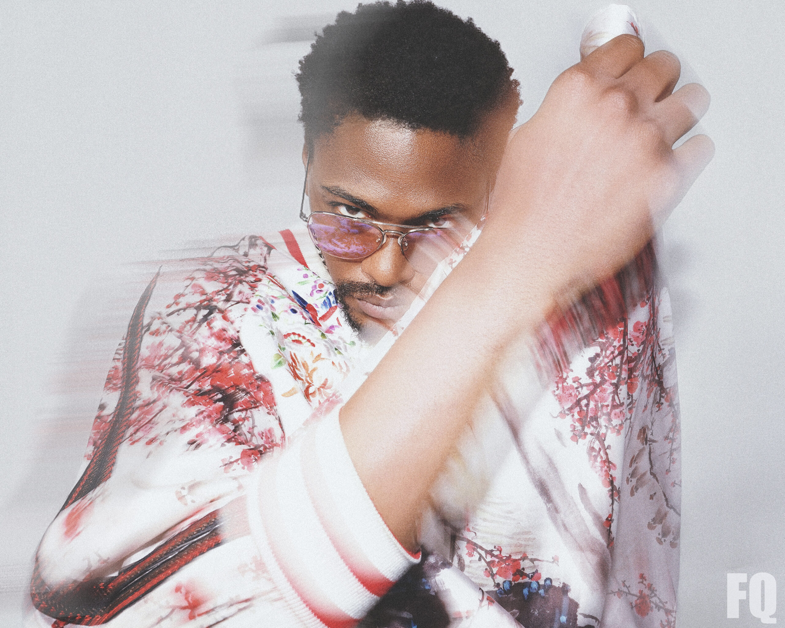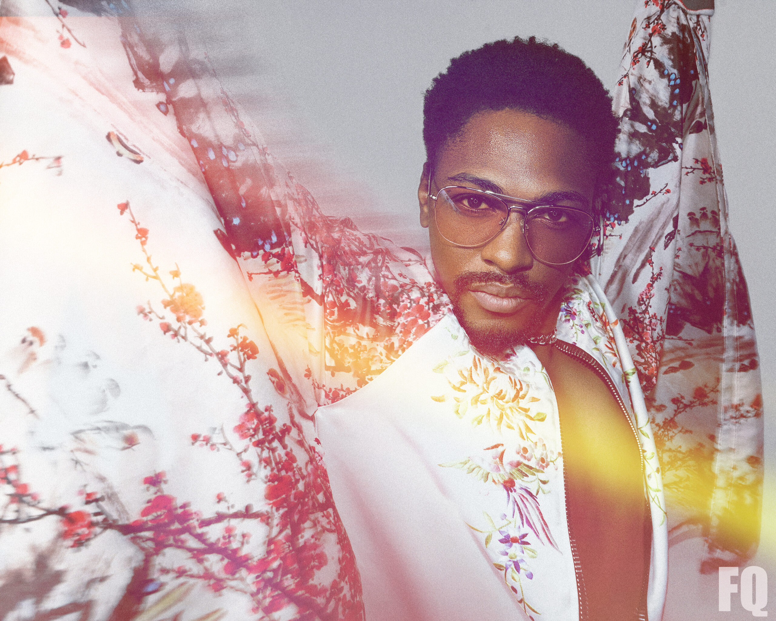 Photograph By BRAD EVERETT YOUNG / Sunglasses by PRIVÉ REVAUX priverevaux.com / Blossom print jacket w/ flared sleeves by @OTT byott.com / OTT Appears courtesy of Maison Privée